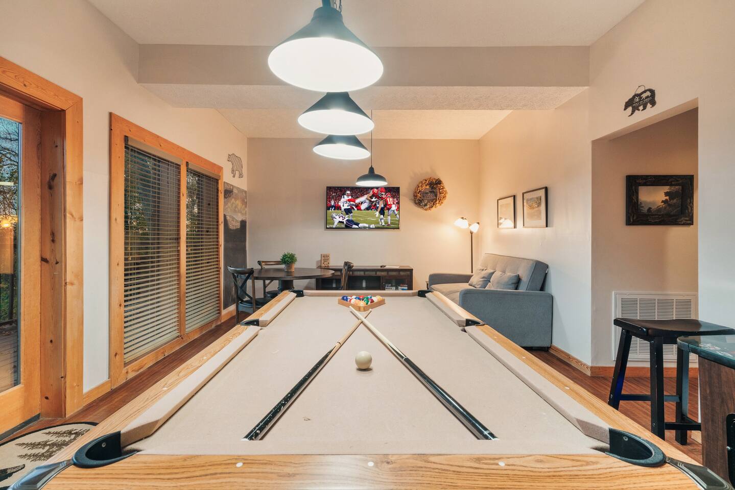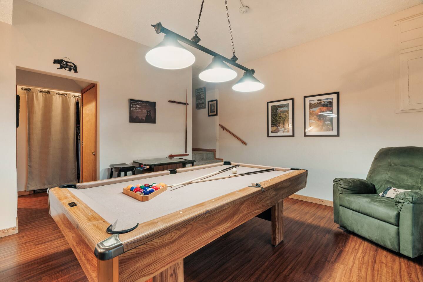 Welcome to Mamaw & Papaw's Place at Mama Cabins! Mountain Mama Cabins hosts this charming three-level cabin features 3 bedrooms, 3 bathrooms, and an entertainment room, comfortably sleeping up to 8 guests. With plenty of space to spread out, it's the perfect retreat for families and friends looking to relax in the Smoky Mountains. Nestled on a peaceful 0.66-acre lot, our cabin is surrounded by nature while still offering paved mountain roads and a spacious driveway that accommodates up to 4 vehicles. Conveniently located, you’re just minutes away from the best of Pigeon Forge, Gatlinburg, Wears Valley, and Townsend. Explore the Great Smoky Mountains National Park, visit popular attractions, or take a scenic drive to Cherokee, North Carolina, and Harrah’s Casino—just an hour away! Book your stay and experience the perfect mix of comfort, convenience, and mountain charm! ✨ Main Level: Bright cathedral ceiling with bay windows Cozy living room with a stacked stone gas fireplace & queen sleeper sofa Modern kitchen with farmhouse sink, new GE appliances & Keurig + 12-cup coffee maker Handmade walnut dining table (seats 6-8) Master suite: King bed, walk-in shower, barnwood vanity, & clawfoot tub Wraparound deck with rocking chairs, swing & dining areas Screened-in porch with hot tub & seating ✨ Upper Level: Spacious loft master suite with king bed & seating area Private master bathroom Loft sitting area with large windows ✨ Lower Level: King bedroom & full bathroom 2nd living area with queen sleeper sofa & big-screen TV Entertainment: Pool table & arcade games (Pac-Man, Frogger, Galaga, etc.) Outdoor patio with rocking swing Washer/Dryer ✨ Outside: Grill near trash cans for easy cleanup Large yard with scenic views over Pine Mountain 📶 High-speed WiFi & streaming TV for all your entertainment needs! 🔑 Easy keypad entry for full cabin access. House Rules – Keep It Simple & Fun! 🐾 No Pets – Not even a pet rock... okay, the rock can stay! But seriously, no pets allowed. A $300 fine applies, and your stay may be canceled if a pet is found. ⏰ Check-In: 4 PM | Check-Out: 10 AM – No early arrivals or late departures (fees apply). Our cleaners are on a tight schedule to keep the cabin sparkling for the next guests. 🛍️ Stocked & Ready – We provide starter supplies, but you may need extras for longer stays. 🧹 No Crazy Chore List! – You're on vacation, not at boot camp. Just follow the simple checkout instructions, and we’ll handle the rest!